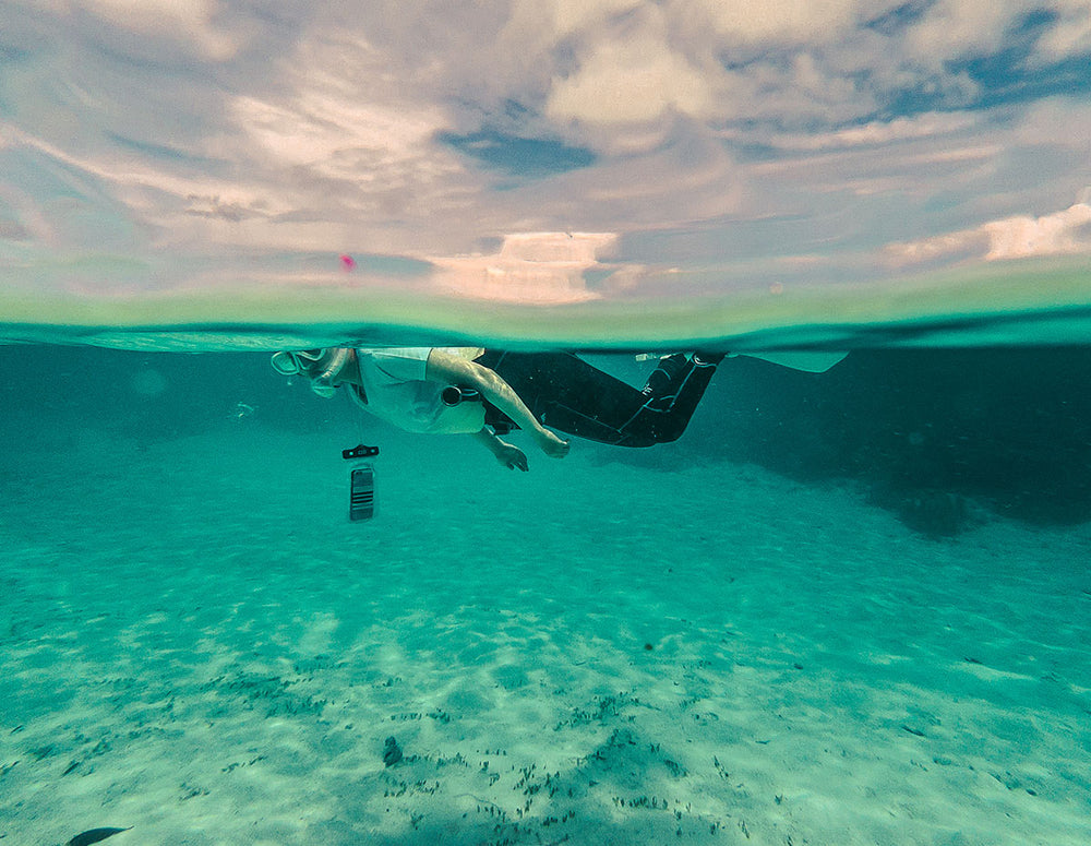 Take crystal clear images above or below the water thanks to a Lenzflex back and front window.